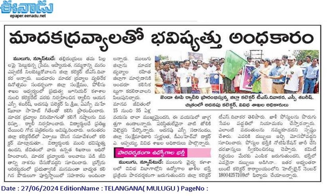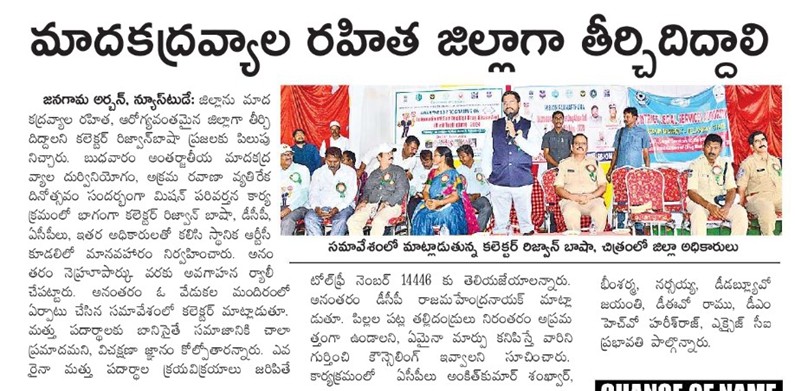 - ANTI DRUGS & EMPOWERMENT RALLY, June 26th, 2024, INTERNATIONAL DAY AGAINST DRUG ABUSE – Jangaon