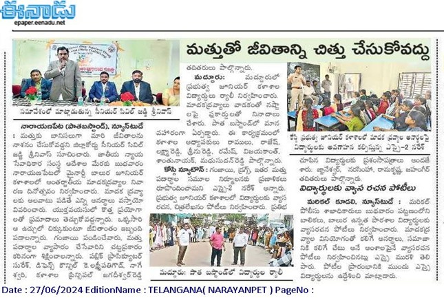 - ANTI DRUGS & EMPOWERMENT RALLY, June 26th, 2024, INTERNATIONAL DAY AGAINST DRUG ABUSE – NARAYANPET