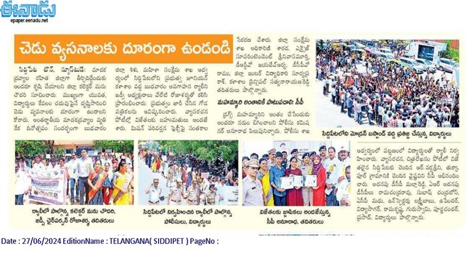 - ANTI DRUGS & EMPOWERMENT RALLY, June 26th, 2024, INTERNATIONAL DAY AGAINST DRUG ABUSE – SIDDIPET