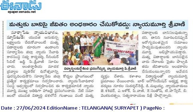 - ANTI DRUGS & EMPOWERMENT RALLY, June 26th, 2024, INTERNATIONAL DAY AGAINST DRUG ABUSE – SURYAPET
