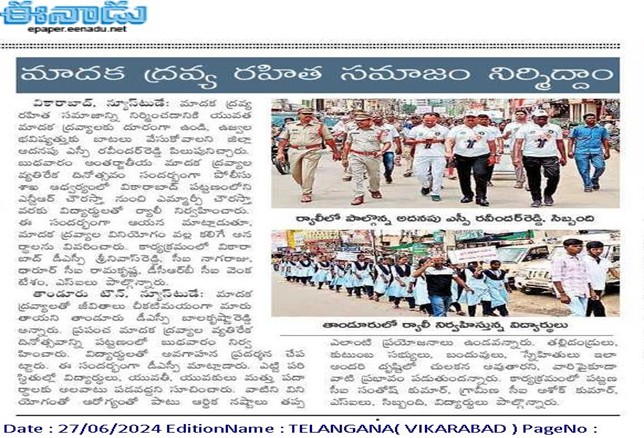 - ANTI DRUGS & EMPOWERMENT RALLY, June 26th, 2024, INTERNATIONAL DAY AGAINST DRUG ABUSE – VIKARABAD