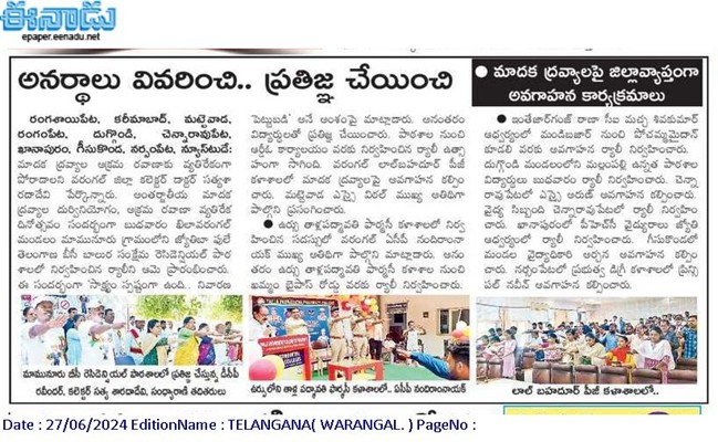 - ANTI DRUGS & EMPOWERMENT RALLY, June 26th, 2024, INTERNATIONAL DAY AGAINST DRUG ABUSE – WARANGAL