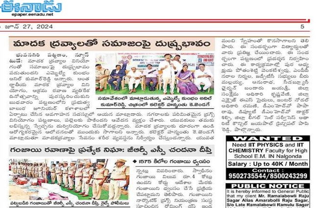 - ANTI DRUGS & EMPOWERMENT RALLY, June 26th, 2024, INTERNATIONAL DAY AGAINST DRUG ABUSE – NAGRA KARNOOL
