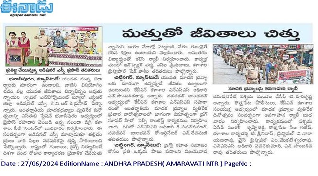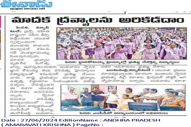 - ANTI DRUGS & EMPOWERMENT RALLY, June 26th, 2024, INTERNATIONAL DAY AGAINST DRUG ABUSE – AP KRISHNA, PEDANA