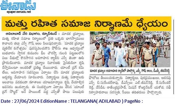 - ANTI DRUGS & EMPOWERMENT RALLY, June 26th, 2024, INTERNATIONAL DAY AGAINST DRUG ABUSE – Telangana Adilabad District