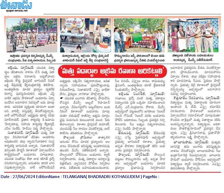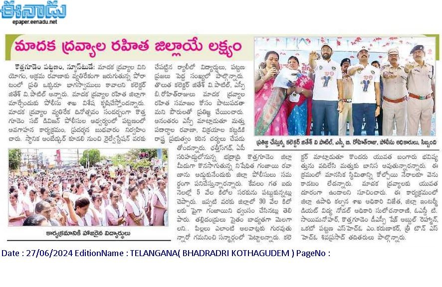 - ANTI DRUGS & EMPOWERMENT RALLY, June 26th, 2024, INTERNATIONAL DAY AGAINST DRUG ABUSE – Telangana Kothagudem District
