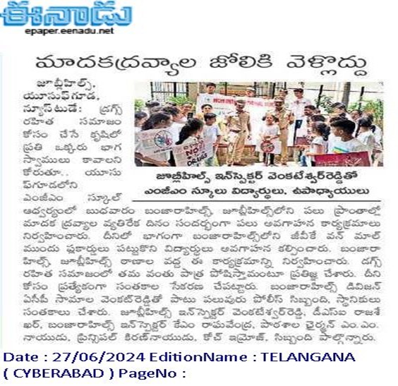 - ANTI DRUGS & EMPOWERMENT RALLY, June 26th, 2024, INTERNATIONAL DAY AGAINST DRUG ABUSE – Jubilee Hills